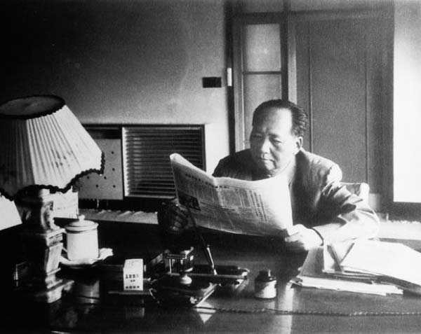 1962年毛澤東在武漢東湖住地閱讀《解放軍報》