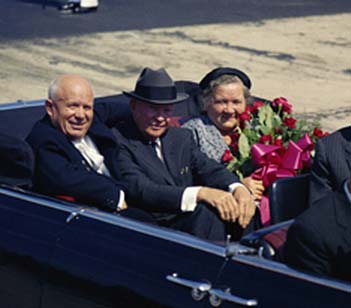 1959年赫魯曉夫攜夫人訪美,戴禮帽者為美國總統艾森豪