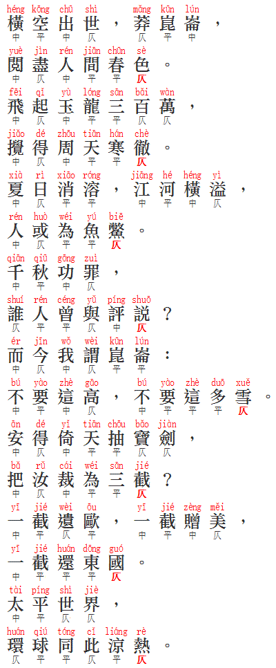 《念奴嬌‧崑崙》 寫於1935年10月